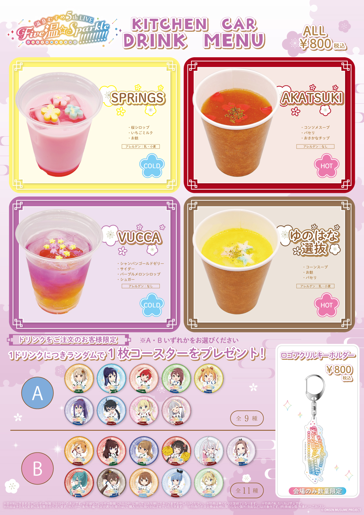 温泉むすめ 5th LIVE Five 温☆Sparkle!!!!!!!!!の開催を記念し、ライブ会場の広場と各店舗にて、この日限りのキッチンカーと店舗による限定コラボメニューの展開が決定いたしました!