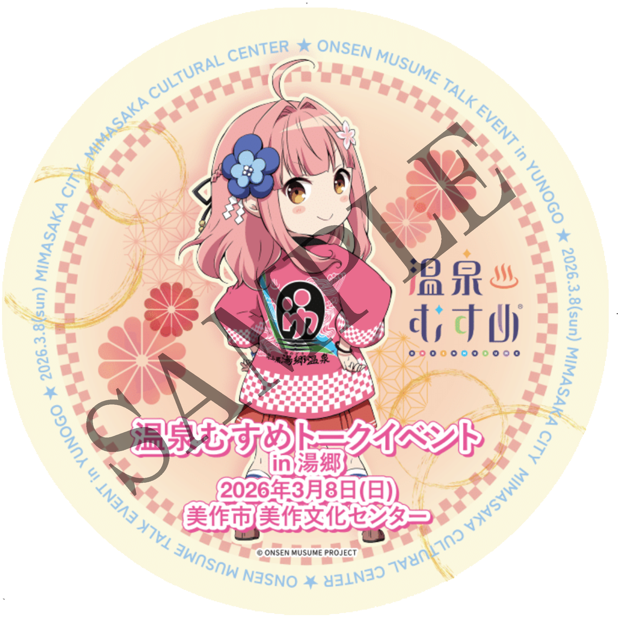 「公式物販ブース」「観光協会ブース」にて合計5,000円購入毎に、今回のイベント用に描きおろしされた新規イラスト使用の「温泉むすめ トークイベント in 湯郷 イベント限定ステッカー」を配布します!