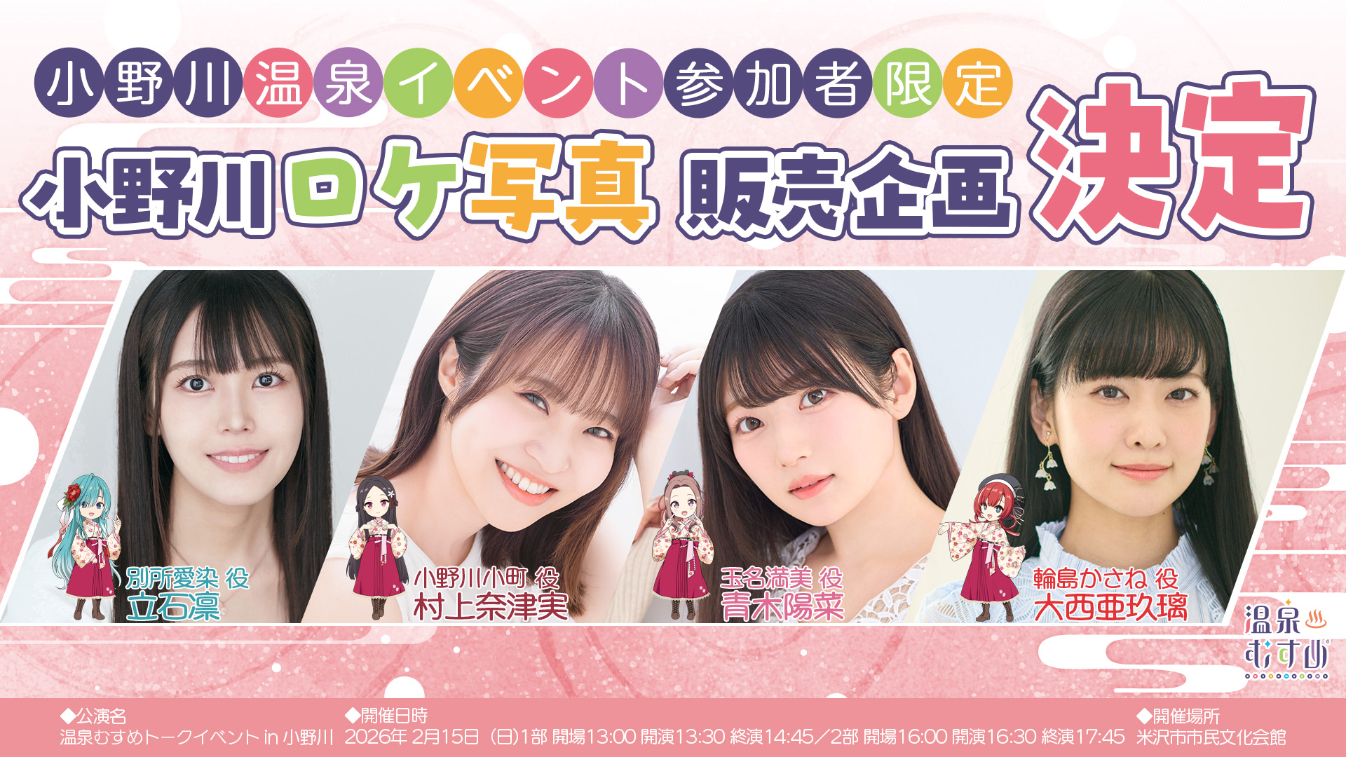 【2/9更新】2026年2月15日(日)に山形県・小野川温泉にて「温泉むすめトークイベント in 小野川」の開催が決定!
