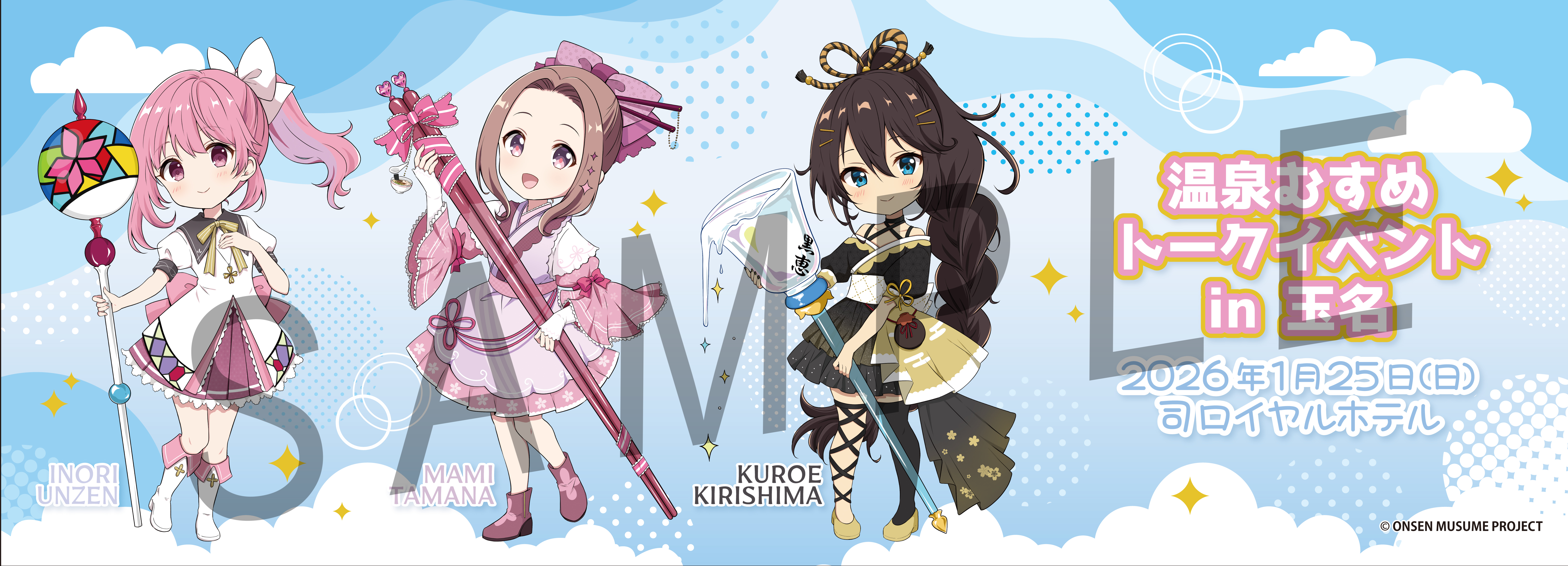 温泉むすめパスポートをお持ちの方は会場限定スタンプを押印させていただきますので、是非お持ちください。