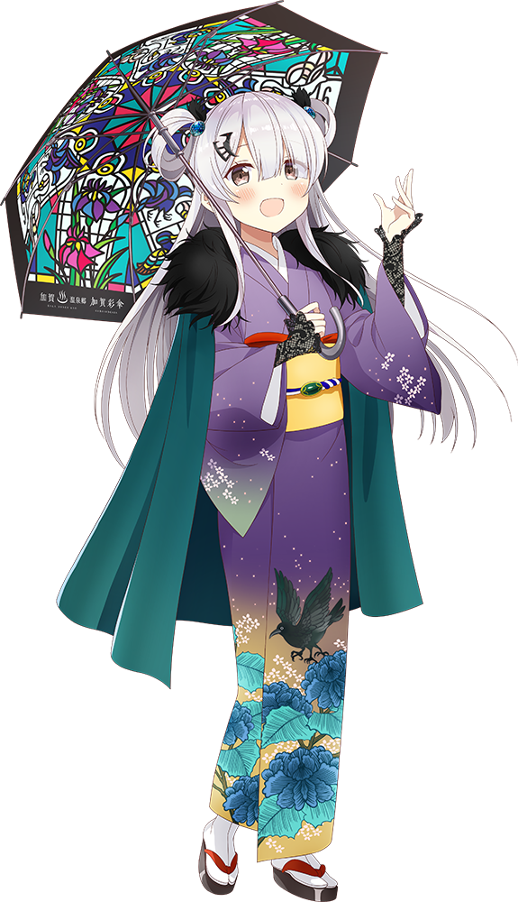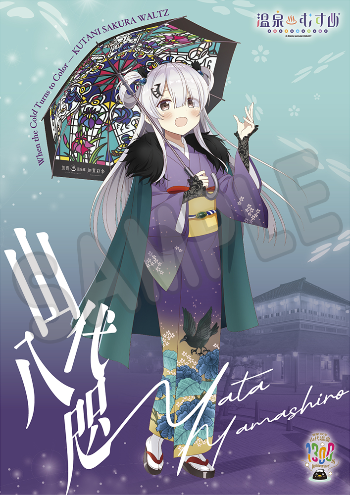 美しい加賀彩傘(DMM.com提供)とともに、華やかな着物姿の山代八咫をぜひお迎えください。