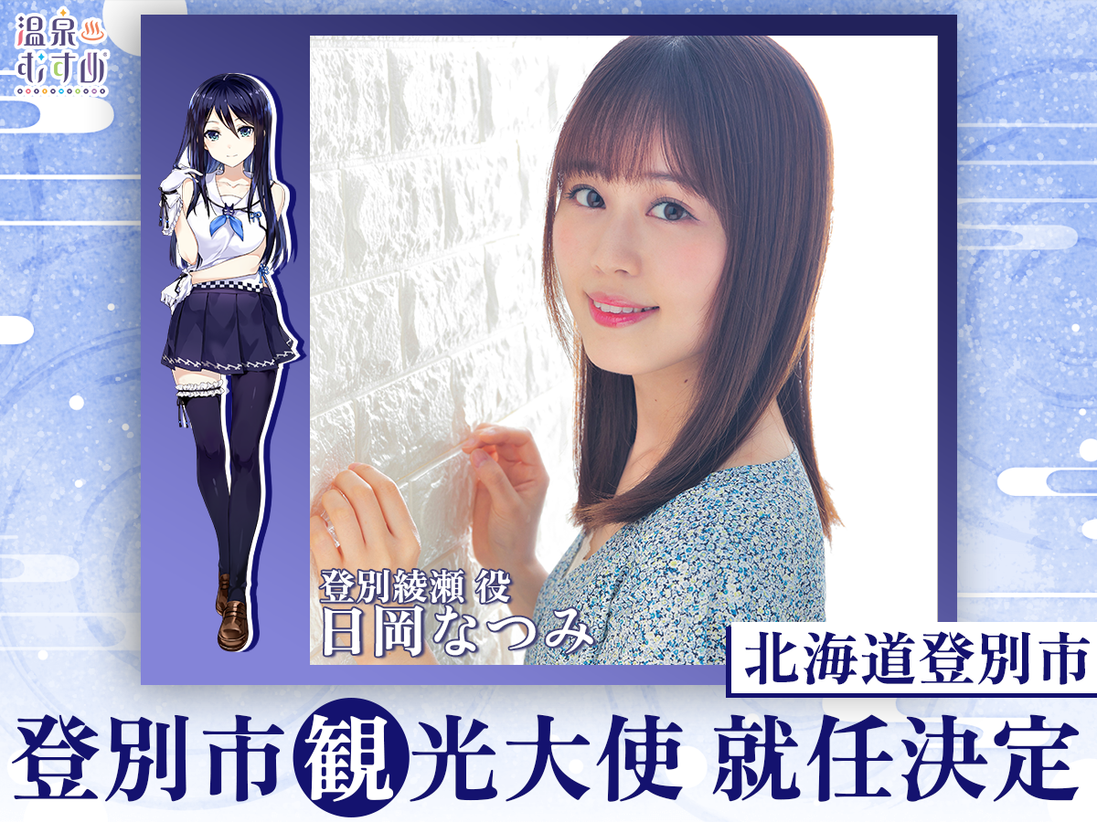 この度、北海道・登別温泉の魅力を国内外に広く発信するため、温泉むすめ「登別綾瀬」、ならびにキャラクターボイスを担当する声優・日岡なつみさんの両名が、登別市観光大使に就任することが決定いたしました。