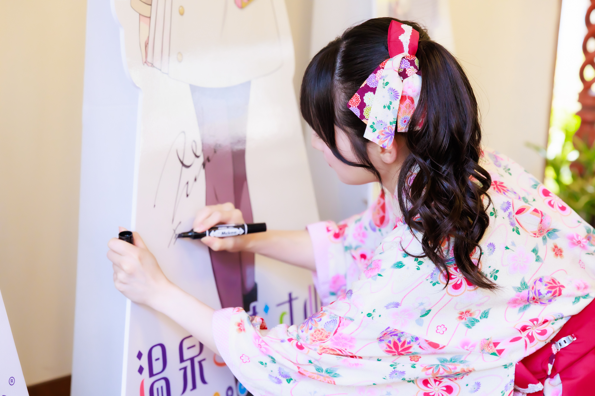 〇玉名・雲仙に設置されるパネルに心を込めてサインを残す。青木陽菜・奥野香耶