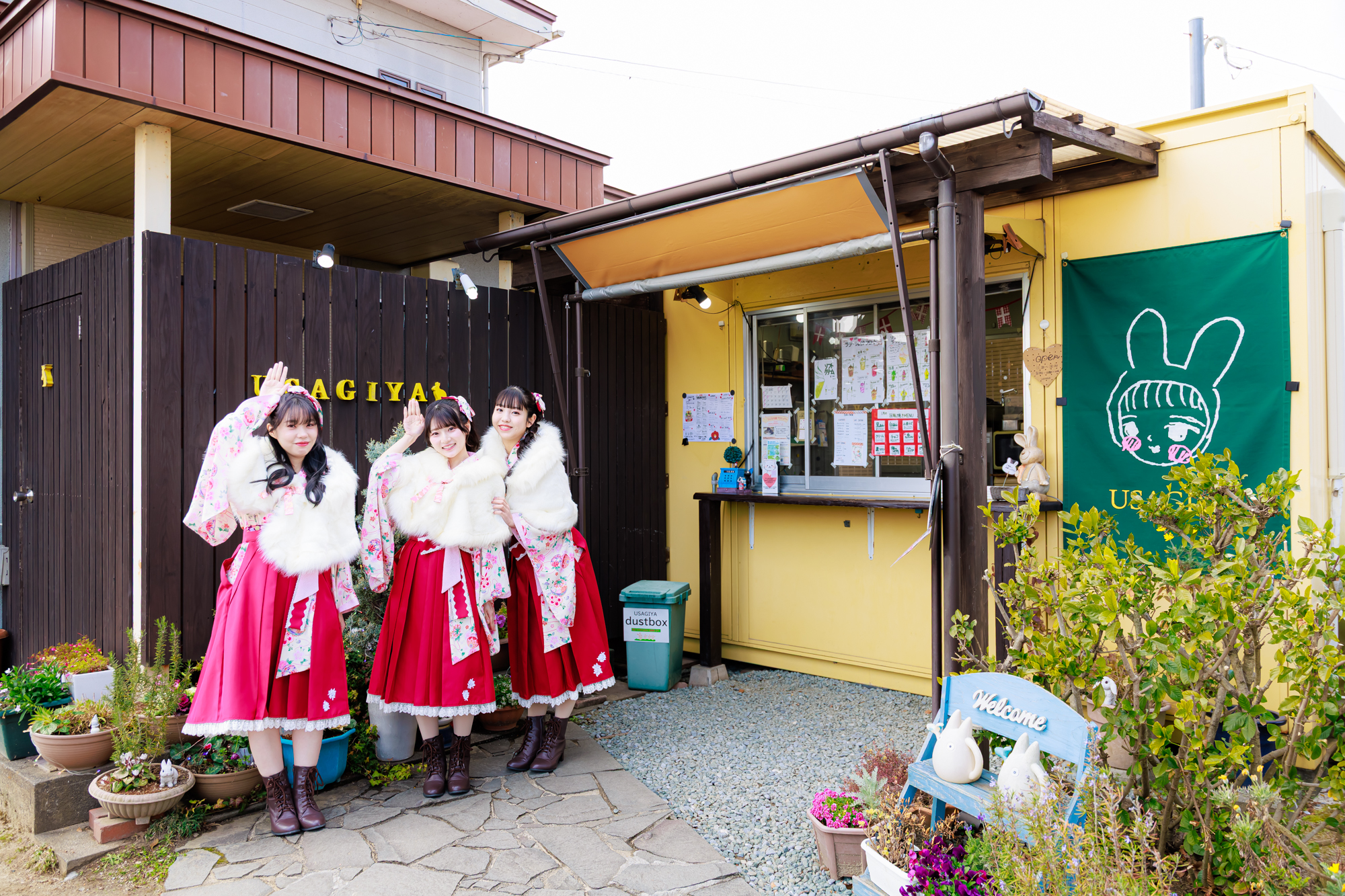 どこか懐かしい雰囲気の漂う店内に、甘い香りが漂います。「USAGIYA」になぞらえてウサギのポーズで!