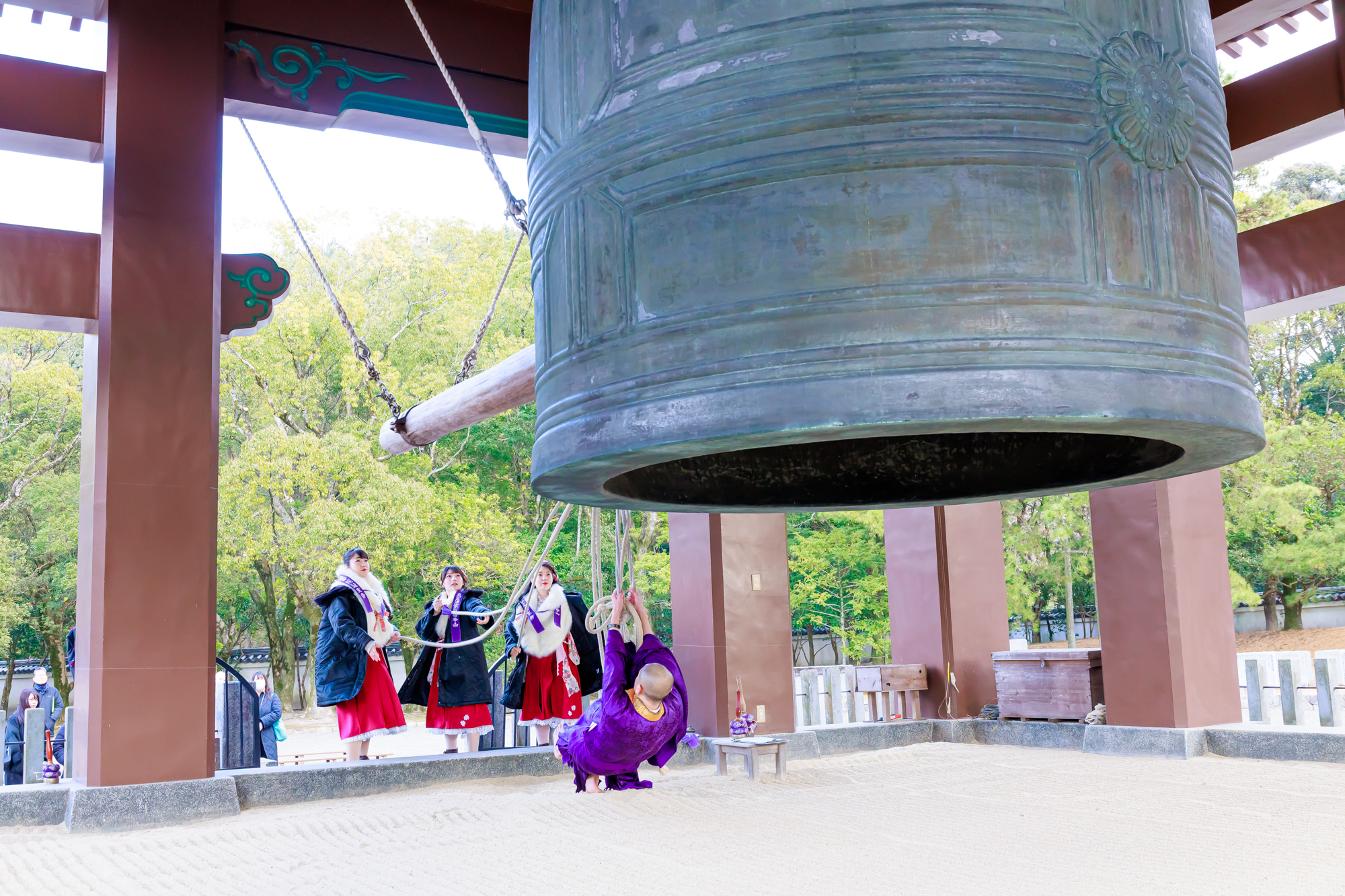 ▲静謐な空気の中、実際に鐘を撞(つ)かせていただくという貴重な体験も!