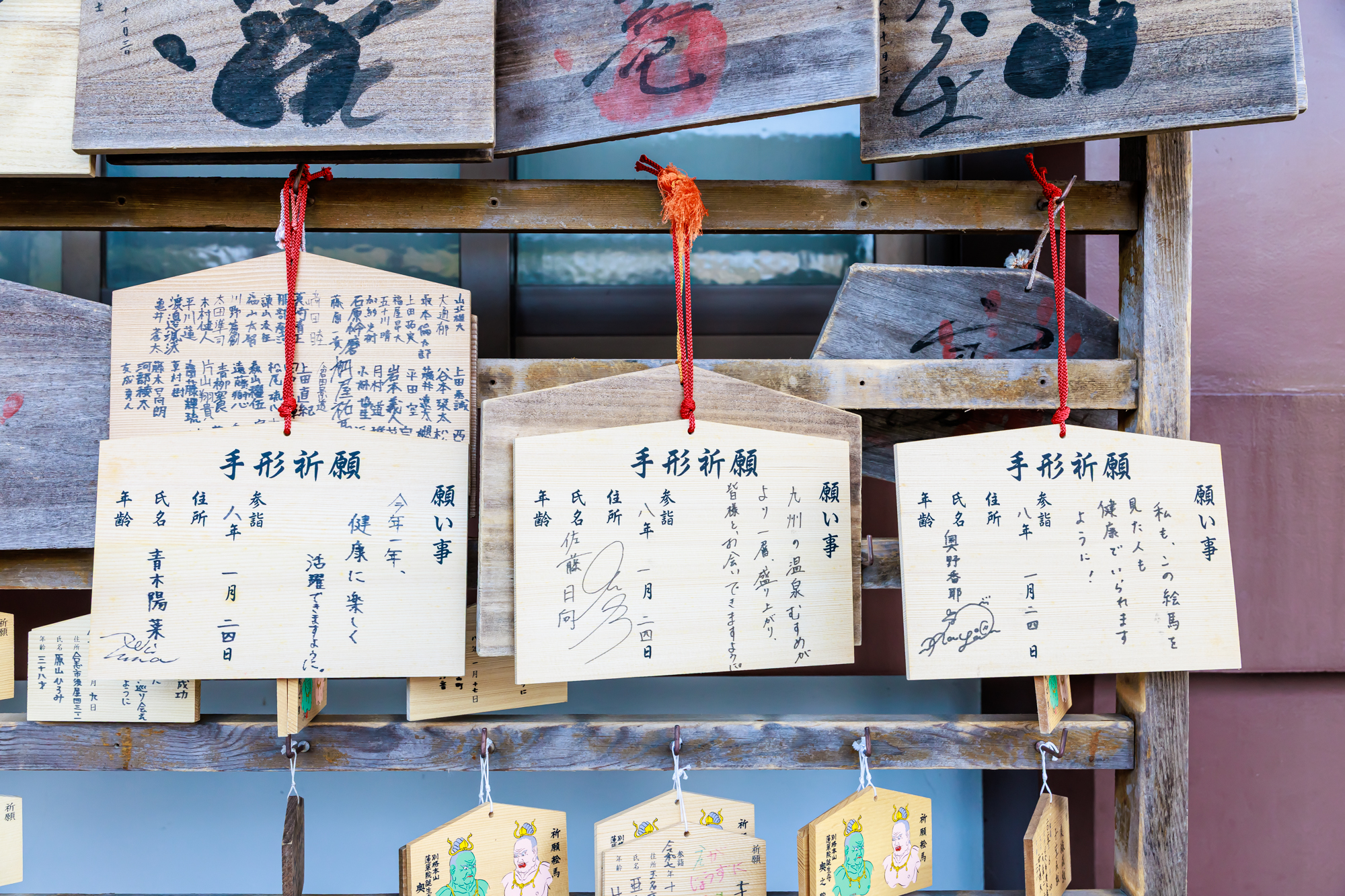 ▲願いを込めて一筆。3人でそれぞれ絵馬を書き、しっかりと奉納してきました。