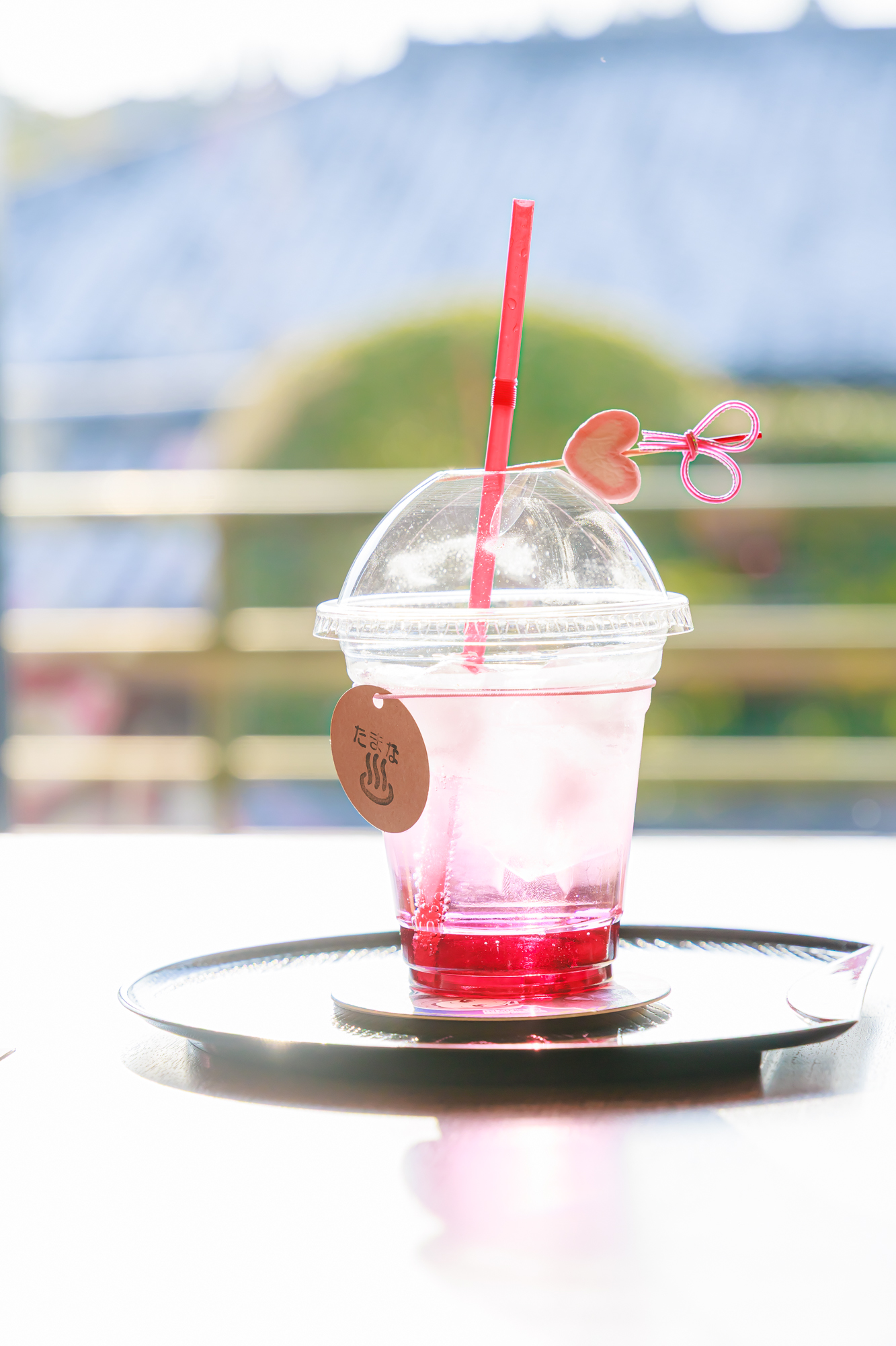 ▲2階の開放的なスペースで一休み。ここでいただいたのが、色鮮やかなコラボドリンク、「満美スウィート・スパ〜」