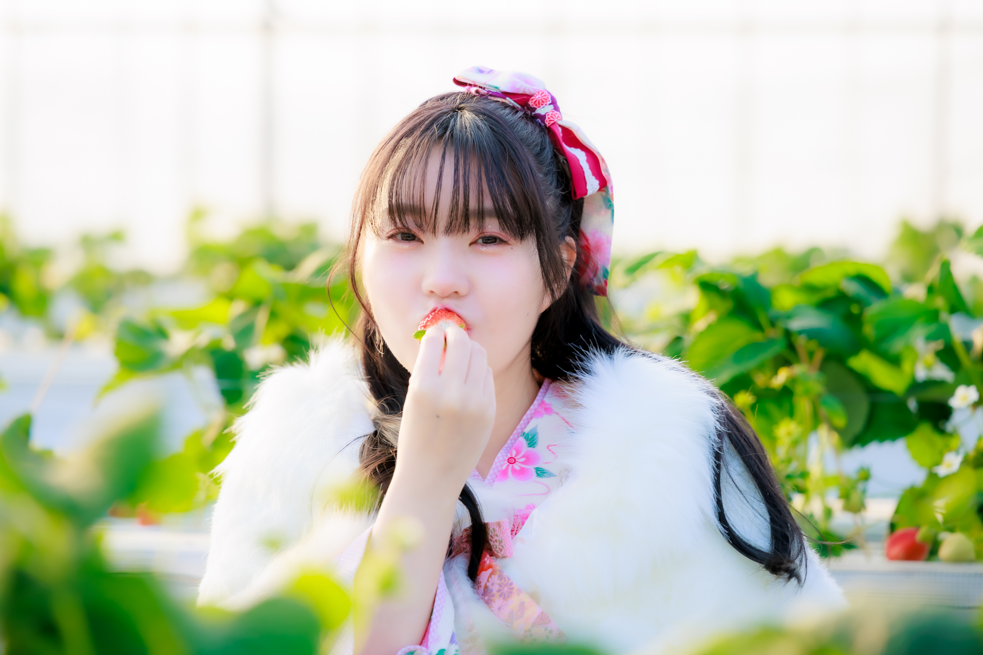 続いて訪れたのは、甘い香りに包まれたいちご農園!