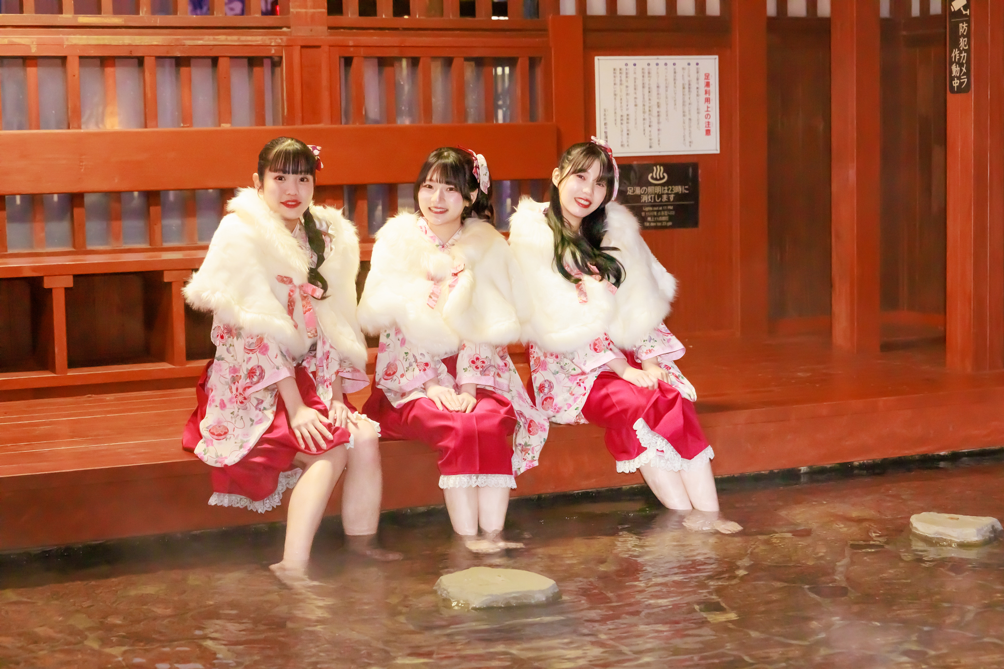 〇玉名温泉に触れられる「しらさぎの足湯」で温まる。青木陽菜・奥野香耶・佐藤日向